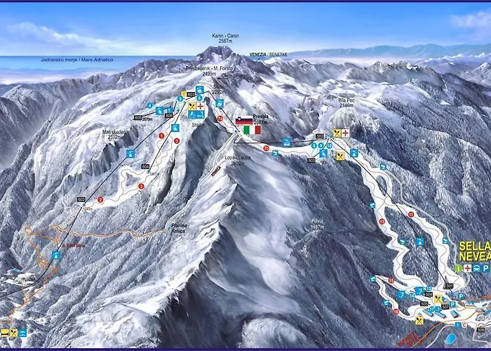 Sella Nevea egyik népszerű helye a Kanin Mountains, amely nagyjából 4 km-re található.